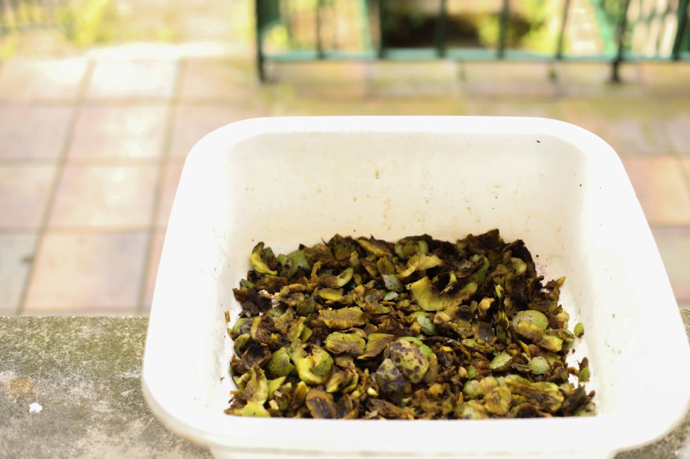 Ensuite, placez les coquilles sans noix dans une cuvette ou un récipient en plastique propre et laissez-les à l’air libre (en prenant soin de ne pas mettre de l’eau dessus) pendant 3 à 4 jours entiers.