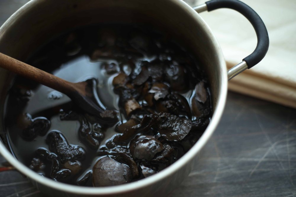 Passé ce délai, elles sont suffisamment oxydées pour produire la teinture. Mettez-les dans une casserole avec de l’eau qui les recouvre (environ 2 litres). Laissez chauffer au feu sans bouillir (en dessous de 100°C) pendant deux heures.