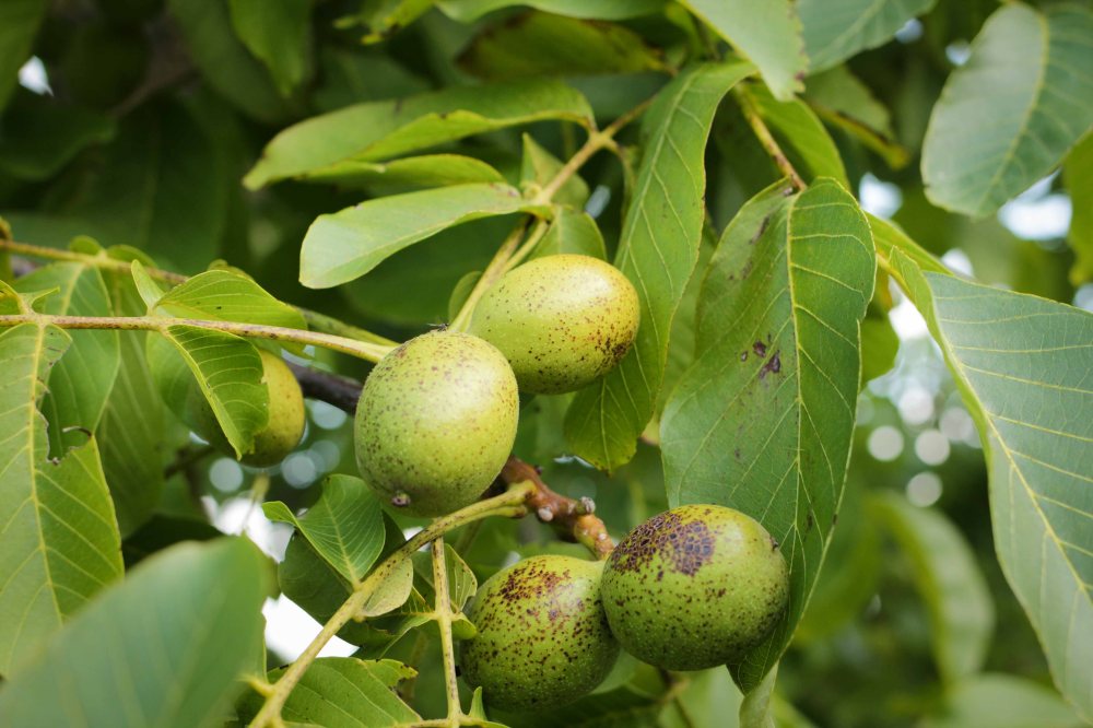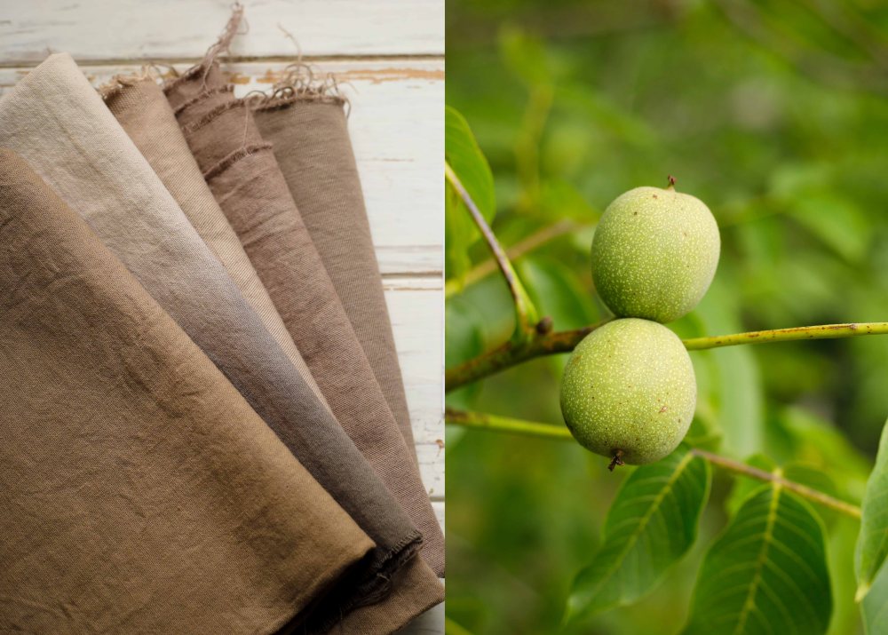 Les pouvoirs tinctoriaux du noyer (écorce, feuilles et noix) sont connus depuis l’époque romaine. Ils ont également remarqué que les noyers empêchent la croissance d’autres plantes à proximité. La raison, c’est que la juglone, une substance de toxicité modérée, s’assombrit et produit un brun très foncé en s’oxydant. La juglone, d’autres pigments de la plante et les tanins produisent des colorants durables et étudiés depuis l’antiquité. Fait intéressant : la teinture de noyer a été utilisée non seulement pour teindre les meubles, le tissu et la laine, mais aussi comme herbicide, encre à dessiner et à écrire, teintures capillaires et médicament (en teinture mère et comme vermifuge).